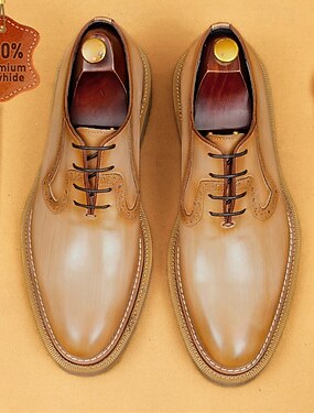 Zapatos derby de cuero genuino de primera calidad para hombre, de color marrón claro, con punta lisa. Zapatos formales clásicos con cordones para novios, invitados a bodas, banquetes, eventos de negocios y ocasiones elegantes.