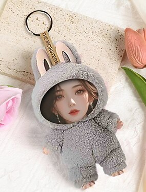 Llavero de peluche personalizado con cara divertida, llavero de conejito de Pascua con foto personalizada, regalo con orejas de conejo, dije para bolso suave, accesorio para mochila, regalo para niños, novia, damas de honor.