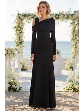 Funda Columna Hasta el Suelo Vestido de Fiesta Vestido Invitada Boda Vestido de noche Vestidos de invitada de boda Elegante Diario Manga Larga Un Hombro Formal con Fruncido