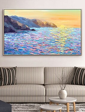 pintura del océano amanecer hecho a mano pintura del océano lienzo grande pintura de la costa mar paisaje pintura paleta vida paisaje marino pintura al óleo pintura del dormitorio decoración del hogar