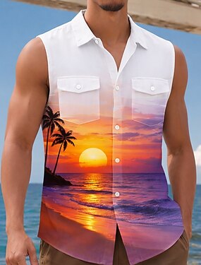 Hombre Árbol de coco Naturaleza y Paisajes Ocaso Camisa camisa hawaiana Sin Mangas Complejo vacaciones en la playa Verano Primavera Cuello Vuelto Impresión 3D Dos bolsillos delanteros Camisas con