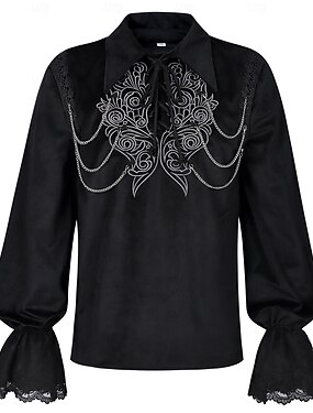 Punk y gótico Medieval Renacimiento Camisas Larga Caballero Color sólido Disfraz Hombre Real Mascarada Fiesta Rendimiento Mascarada Adultos Camisas