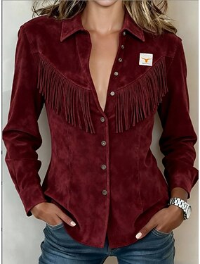 Mujer Camisa Camisa con botones Camisa casual Botones Plano Vintage Elegante Clásico Manga Larga Cuello Camisero Tops regulares Diario Festivos Noche Rojo Primavera Otoño