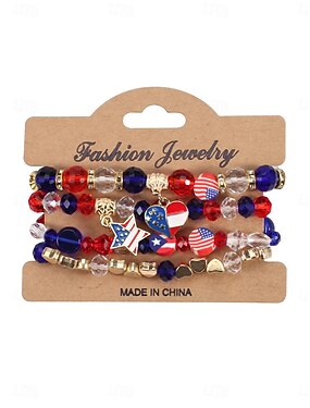 Conjunto de pulseras multimateriales para mujer, varios estilos, colgantes con dijes de la bandera patriótica de EE. UU., bandas de cuerda ajustables, perfecto para el 250.° aniversario de EE. UU., el Día de la Independencia y uso diario informal.
