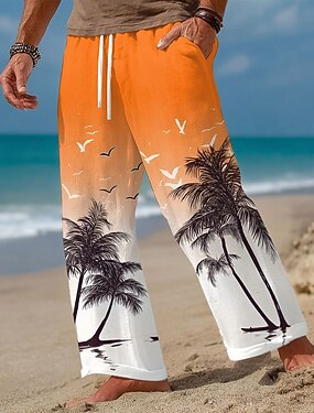 Hombre Árbol de coco Degradado de color Plantas tropicales Pantalones Pantalones anchos Pantalones casuales Media cintura Hawaiano Exterior Vacaciones Ropa de playa Cintura elástica con cordón