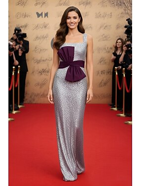 Funda Columna Hasta el Suelo Vestido Invitada Boda Vestido formal Vestido de noche Trajes de gala Elegante Sin Mangas Escote Cuadrado Fiesta de baile Formal Lentejuelas con Lazo(s) Lentejuela
