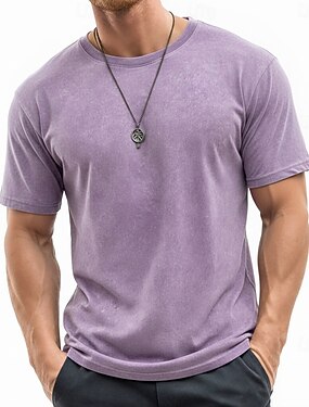 Hombre Camisa 100% algodón con lavado ácido Manga Corta Cuello Barco Verano Plano Vintage Casual Prenda teñida Desteñido Casual Ropa de calle Azul Piscina Negro Rosa Camiseta superior para hombre