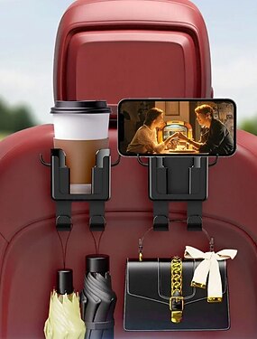 Soporte multifuncional para reposacabezas, portavasos, organizador colgante para botellas de bebidas, gancho para auto, soporte para teléfono, accesorios para auto, organizador para asiento trasero,
