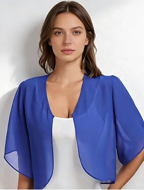 Chales Estolas de Señora Envolturas de la madre Envolturas de novia Envolturas de invitados de boda Elegante Un Color Sensual Manga Corta Gasa Velos de Boda Con Color Puro Para Boda Verano