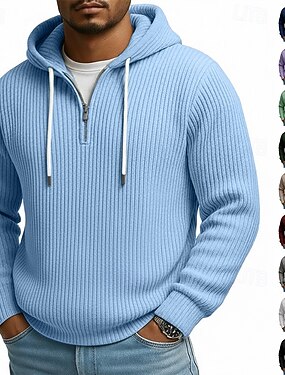Hombre Sudadera Sudadera con capucha y diseño de gofres Pull-over Sudadera con capucha y cremallera de un cuarto Azul Piscina Rojo tinto Negro Verde Ejército Rojo Con Capucha Plano Retazos Bloque de