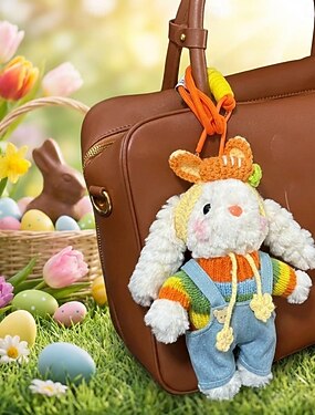 Conejito de Pascua de peluche con overol de mezclilla extraíble &Suéter arcoíris, juguete de conejo de peluche con atuendo desmontable, lindo conejito de orejas largas, perfecto para rellenar una