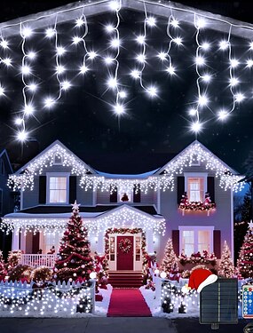 Luces de carámbano 33 pies 400 LEDs 48 gotas 8 funciones temporizador control remoto cable transparente luces de cadena conectables luces decorativas para fiestas de boda bajo voltaje enchufe seguro