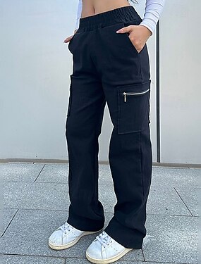 Mujer Pantalones cargo Moda Ropa de calle Longitud total Alta cintura Plano Multi bolsillo Confortable Suave Cómodo Microelástico Exterior Calle Negro Caqui Gris Primavera & Otoño Ajuste regular