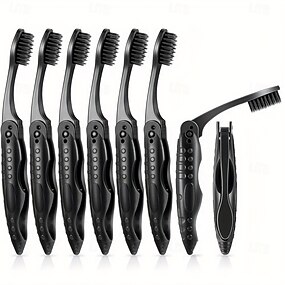 Cepillo de dientes de viaje plegable negro de 8 piezas, cepillo de dientes portátil de carbón activado, con cerdas suaves y medianas, ideal para viajes y campamentos, y para el cuidado bucal diario.