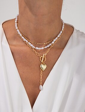 Gargantillas Perla Brillantes Mujer Elegante Vintage Lujo Multi capa Corazón Boda Irregular Gargantillas Para Boda Fiesta Diario
