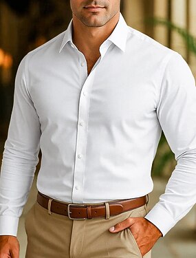 Hombre Camisa Camisa para Vestido Camisa sin planchar Camisa de cuello Abotonar la camisa Plano Boda Exterior Negro Blanco Rosa Vino Manga Larga Cuello Vuelto Verano Primavera Ropa