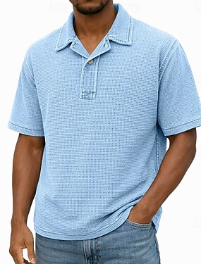Hombre Camiseta de golf Polo de punto gofre Casual Vacaciones Cuello Vuelto Manga Corta Moda Moderno Color sólido Con Texturas Botones Verano Primavera Primavera verano Ajuste regular Amarillo Verde