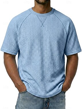 Hombre Camiseta Camiseta de punto gofre Manga Corta Cuello Barco Verano Primavera Plano Con Texturas Moda Design Básico Mangas raglanes Casual Vacaciones Calle Bleu Ciel Blanco Negro Camiseta