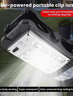 Aplique de pared solar exterior IP65 resistente al agua y de alto brillo con clip, lámpara LED con sensor de movimiento inteligente, no requiere perforación, jardín, patio, valla, escalera, patio,
