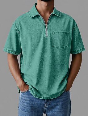 Hombre polo con cremallera Camiseta de algodón Manga Corta Cremallera de un cuarto Verano Primavera Primavera verano Plano Moda Básico Moderno Cremallera Bolsillo Ropa Cotidiana Cita Fin de semana