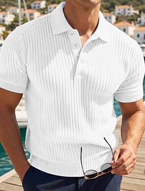 Hombre Top de punto acanalado Con Texturas Casual Trabajo Diseño Cuello polo acanalado Manga Corta Básico Moderno Bloque de color Botones De Punto Verano Primavera Primavera verano Ajuste regular