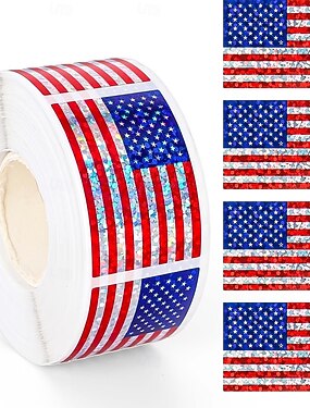 2 rollos, 600 pegatinas holográficas de la bandera estadounidense patriótica (1,5 x 1,5 pulgadas), pegatinas brillantes de la bandera estadounidense para el 4 de julio, el Día de la Independencia, el