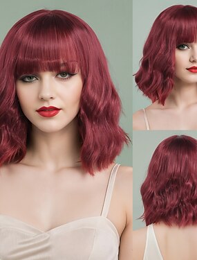 Pelucas bob rojas para mujeres blancas: pelucas bob cortas de 12'' con flequillo, peluca sintética de moda natural, cabello sintético colorido para cosplay diario, Halloween.