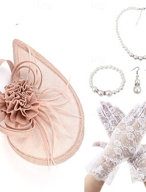 derby Guantes Collar Sombrero fascinador Dama Disfraz Mujer Mascarada Pañuelo Festival de carreras de caballos Adulto Tocados Todas las Temporadas