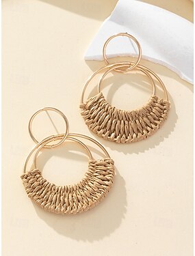 Pendientes de aro bohemios tejidos para mujer, pendientes redondos llamativos de estilo ratán de aleación en varios colores para vacaciones en la playa, ropa de resort y joyería informal de verano