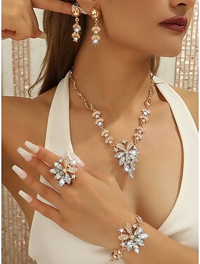 Elegante conjunto de joyas de diamantes de imitación para mujer, incluye collar, aretes y pulsera, perfecto para bodas, fiestas y eventos formales.
