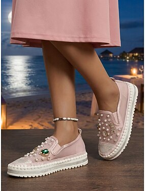 Zapatillas de boda para mujer con perlas: elegantes zapatos de novia sin cordones con pedrería para novias playeras.