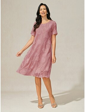 Mujer Mini vestido Vestido de cambio Elegante Color sólido Manga Corta Cuello Barco Rosa polvorienta