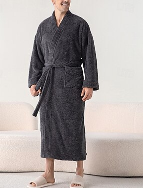 Hombre Pijamas Túnica Albornoces bata de baño 1 pcs Plano Elegante Casual Confort Hogar Diario Cama Vellón Comodidad Templado Escote en Pico Manga Larga Bolsillo Otoño Invierno Negro Blanco