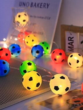 1,5 m 10 ledes &Guirnalda de luces LED de 3 m con forma de balón de fútbol de colores, 20 LED, modo fijo, luz cálida, funciona con pilas (pilas AA), ideal para decoración de interiores de dormitorio,