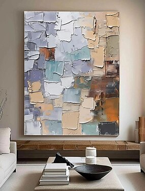 Pintura al óleo hecha a mano, lienzo, arte de pared, decoración moderna, cuadrada, abstracta, para decoración del hogar, comedor, pintura enrollada, sin marco y sin estirar.