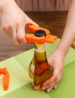 4 abrebotellas y latas multifuncionales, abridores de tapas de frascos para cocina, manos débiles, botellas de agua de plástico ajustables para personas mayores con artritis, color naranja