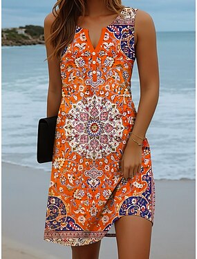 Mujer Mini vestido Vestido de cambio Vestido de verano Vacaciones Casual Boho Diario Festivos Noche Ajuste regular Graphic Tribal Sin Mangas Cuello con muescas. Azul Piscina Rojo Naranja Verde Trébol