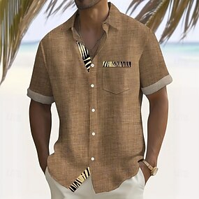 Hombre Geométrico Línea Arte abstracto Camisa Abotonar la camisa Manga Corta Informal de negocios Diario Exterior Vacaciones Verano Primavera Cuello Vuelto Impresión 3D Camisa tipo lino Azul Piscina
