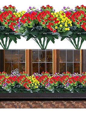 Flores artificiales colgantes con cesta, plantas colgantes artificiales con flores de seda sintética resistentes a los rayos UV para exteriores e interiores, primavera, verano, porche, patio, balcón,