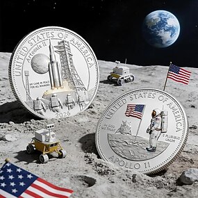 Moneda conmemorativa de las misiones lunares Apolo 11 y Artemis II, homenaje al alunizaje del programa espacial estadounidense (1969-2026), artículo de colección de astronautas y cohetes, regalo histórico de recuerdos espaciales