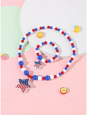 Conjunto de collar y pulsera patrióticos de acrílico para mujer, joyería de cuentas rojas, blancas y azules de varios estilos para la celebración del 250 aniversario de Estados Unidos, el Día de la Independencia y para uso diario informal.