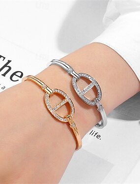 Zirconio Geométrico Serie de tótem Estilo lindo Elegante Sencillo De moda Cromo Pulsera pulsera Plata / Dorado Para Boda Fiesta Pedida Fiesta de baile
