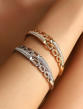 Zirconio Retro Aojo Elegante Moda Personalizado De moda Cromo Pulsera pulsera Plata / Dorado Para Boda Fiesta Pedida Fiesta de baile
