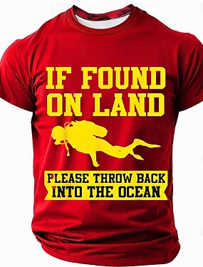 Si se encuentra en la tierra, por favor, devuélvalo al océano. Camiseta de manga corta roja divertida de buceo para hombre, ropa, tallas S, M, L, XL, XXL, XXXL.