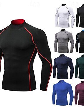 Hombre Color sólido Camiseta Compresión Capa base de entrenamiento Camiseta Fitness Primavera Otoño Manga Larga Ropa Deportiva Secado rápido Gimnasio Baloncesto Corriendo De Deporte Azul Piscina
