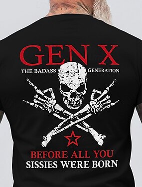 Camiseta vintage desgastada con estampado de calavera, cuello redondo, corte regular, estilo casual y de diseñador para hombre, la generación X, la generación más ruda antes de que nacieran todos