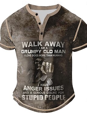 Hombre Texto Camiseta Henley Shirt Manga Corta Casual Primavera Todas las Temporadas Azul Gris Verde Color Caquí Henley Camiseta Henley