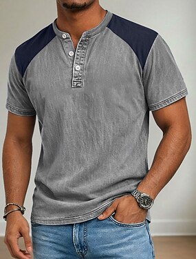 Hombre Henley Shirt Camisa 100% algodón con lavado ácido Manga Corta Henley Primavera verano Verano Primavera Bloque de color Retazos Retro Antiguo Casual Henley Retazos Estilo retro Bloque de Color