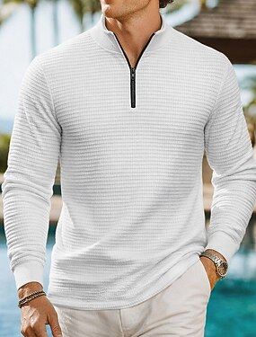 Hombre Camisetas polo con diseño de gofre Con Texturas Casual Deporte Sin Cuello Manga Larga Moda Cómodo Plano Cerrar Primavera Primavera & Otoño Ajuste regular Azul Piscina Negro Blanco Gris
