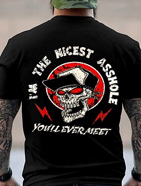 Camiseta gráfica "Soy el gilipollas más amable que jamás conocerás" para hombres - diseño de calavera divertida de manga corta estilo de vida atrevido